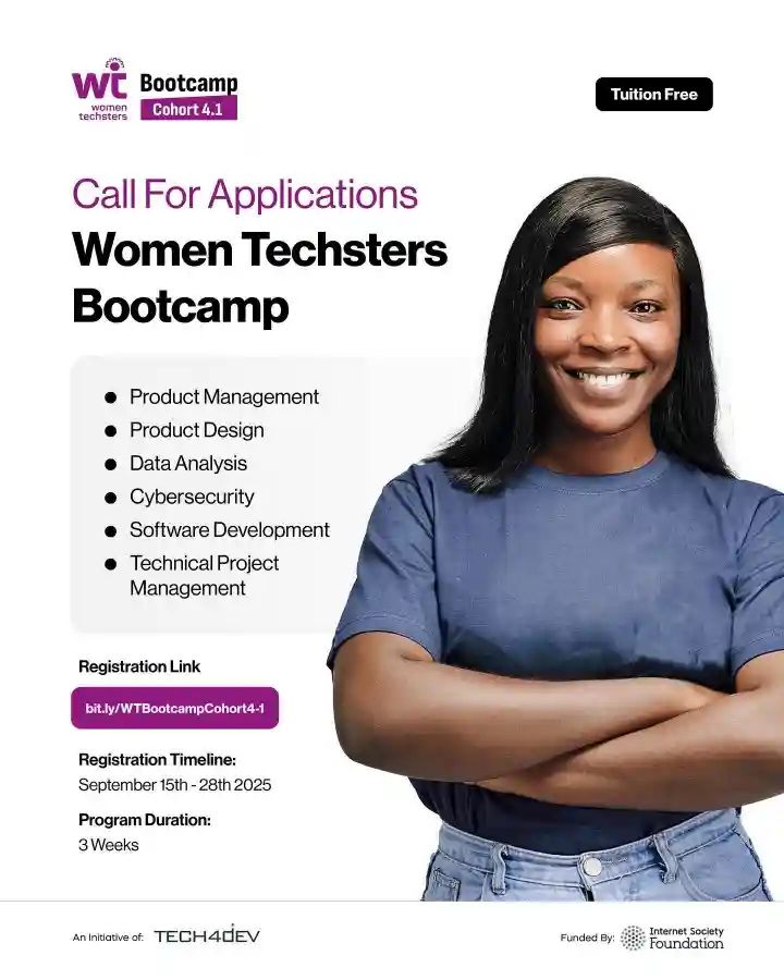 According to the organizers, “The Women Techsters Bootcamp is committed to empowering women across Africa by providing access to quality tech education at no cost.”